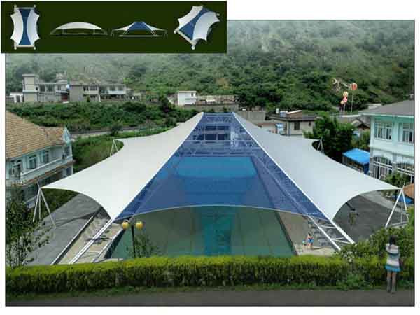 氣膜游泳館使用的膜材都是由聚酯纖維和多層涂層復(fù)合而成,符合歐美及中國環(huán)保標(biāo)準,是一種具有強度,柔韌性好的薄膜材料;在力學(xué)上織物基材具有抗拉強度,抗撕裂強度,耐熱性,耐久性,防火性;涂層材具有耐候性,防污性,加工性,耐水性,耐品,透光性