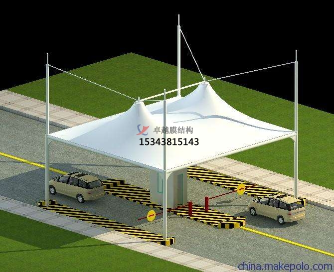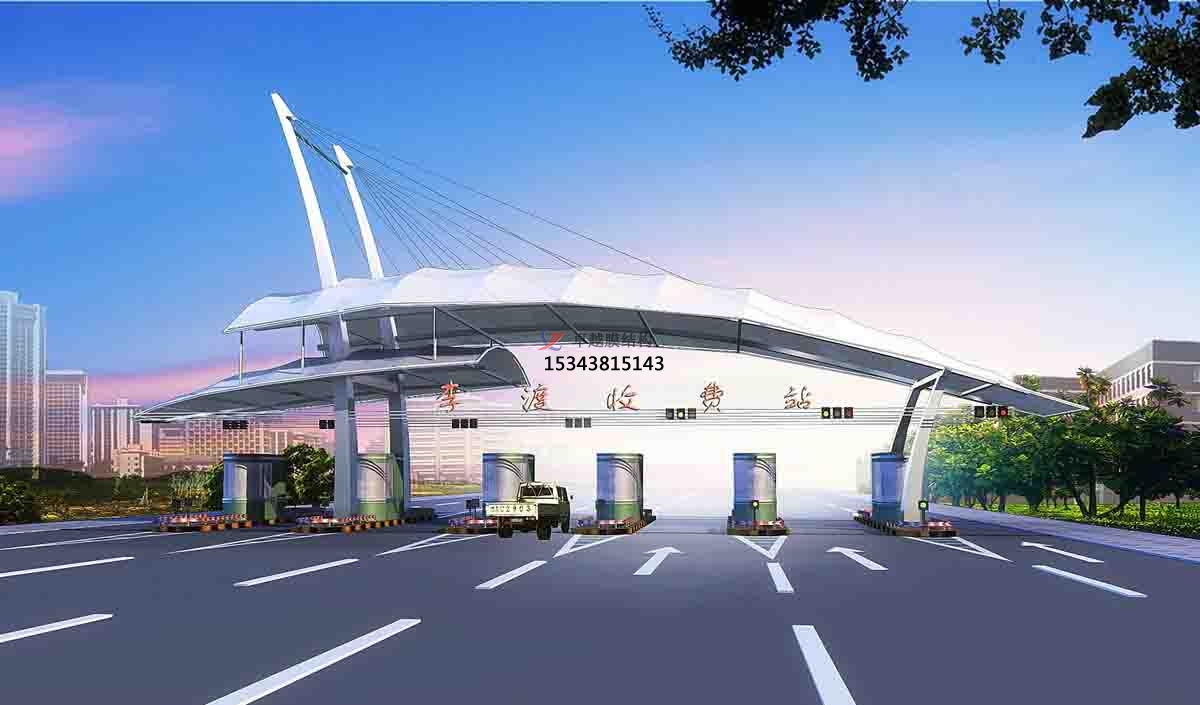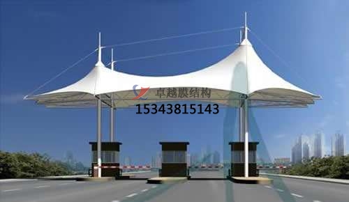 收費站膜結構的弧形線條是在體現(xiàn)膜材料得柔性性能的同時是充分得展現(xiàn)了膜結構建筑的優(yōu)雅內(nèi)涵,其柔美特點與高速路的剛性與速度特點形成了鮮明的對比。同時,收費站膜結構外形也延續(xù)了中國建筑中對稱的傳統(tǒng)特點,在視覺上也滿足了大眾的審美觀。