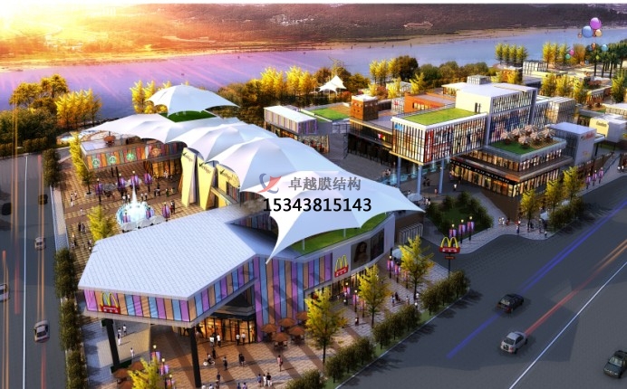 商業(yè)街膜結(jié)構(gòu)概念以及有何特點(diǎn)?商業(yè)膜結(jié)構(gòu)顧名思義是膜結(jié)構(gòu)應(yīng)用于商業(yè)中心的一種建筑,其實(shí)生活中我們可能已經(jīng)看到了,僅僅是因?yàn)閷?duì)這種建筑不太了解,所以不認(rèn)識(shí)而已。商業(yè)街是人流聚集的一個(gè)主要場(chǎng)所。采用東西方向排列,以入口為中軸對(duì)稱(chēng)布局,建筑立面多采用塔樓,騎樓,雨罩的元素使空間產(chǎn)生新的劃分,室內(nèi)空間既設(shè)置了集中商業(yè),又有零散店鋪,是西方現(xiàn)代MALL與中國(guó)傳統(tǒng)商鋪的有機(jī)組合。