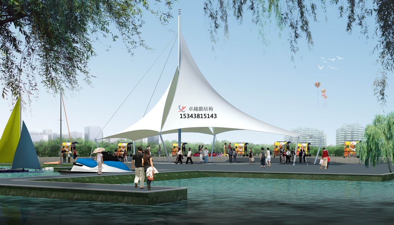 4、膜結(jié)構(gòu)以造型學(xué)、色彩學(xué)為依托,可結(jié)合自然及民族風(fēng)情創(chuàng)意出曲線和造型,且造型優(yōu)美、風(fēng)格各異、飄逸自然。