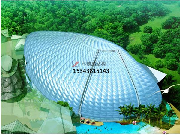 ETFE膜結(jié)構(gòu)材料無(wú)定形,只有維持張力平衡的形狀才是穩(wěn)定的造型,可充分發(fā)揮膜結(jié)構(gòu)材料抗拉強(qiáng)度高的特點(diǎn),應(yīng)用合理的支撐結(jié)構(gòu)體系。