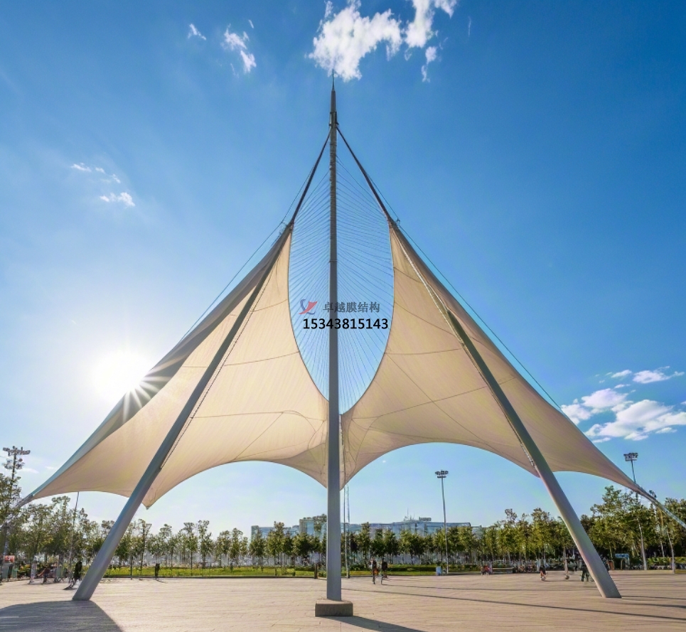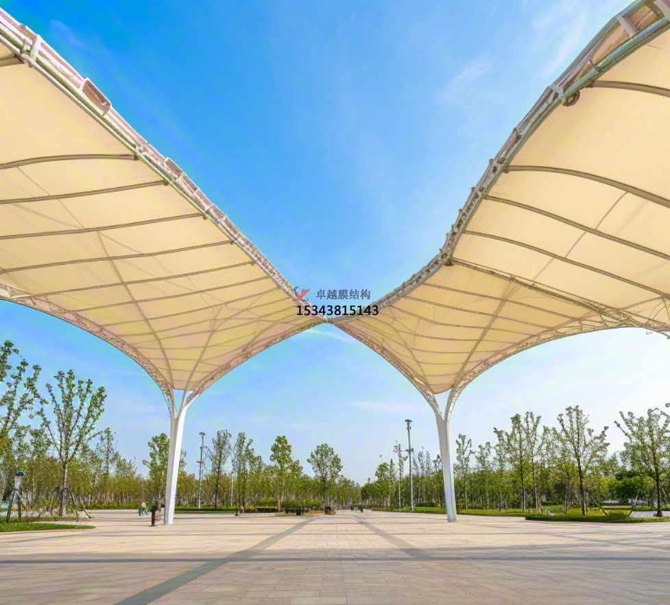 膜結構,顧名思義,是以薄膜材料(如PVDF、PTFE、ETFE等)為主要承重和覆蓋元素,通過張拉、充氣或骨架支撐等方式形成的空間結構。其設計原理基于材料力學、結構工程學以及建筑美學的綜合考量,旨在創(chuàng)造既安全穩(wěn)定又美觀實用的建筑形態(tài)。在廣場和公園的設計中,膜結構往往被用來構建遮陽棚、觀演臺、休閑亭、步行廊道等,既滿足了實用功能,又豐富了空間層次。