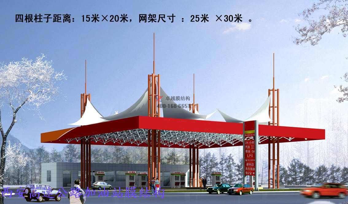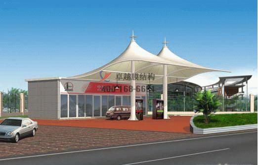 索膜結(jié)構(gòu)形式:管桁架四邊張拉索膜結(jié)構(gòu)加油站加氣站
