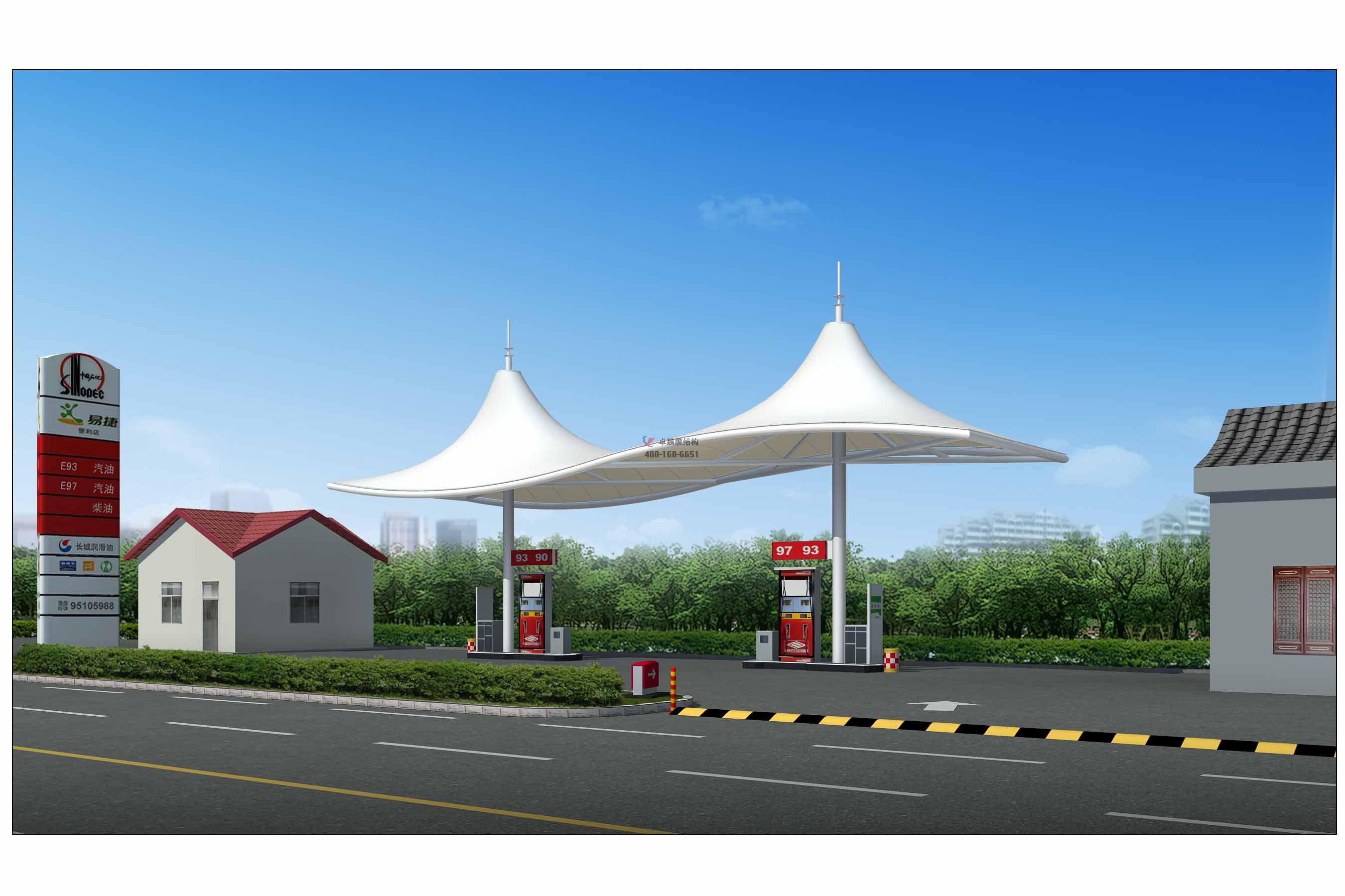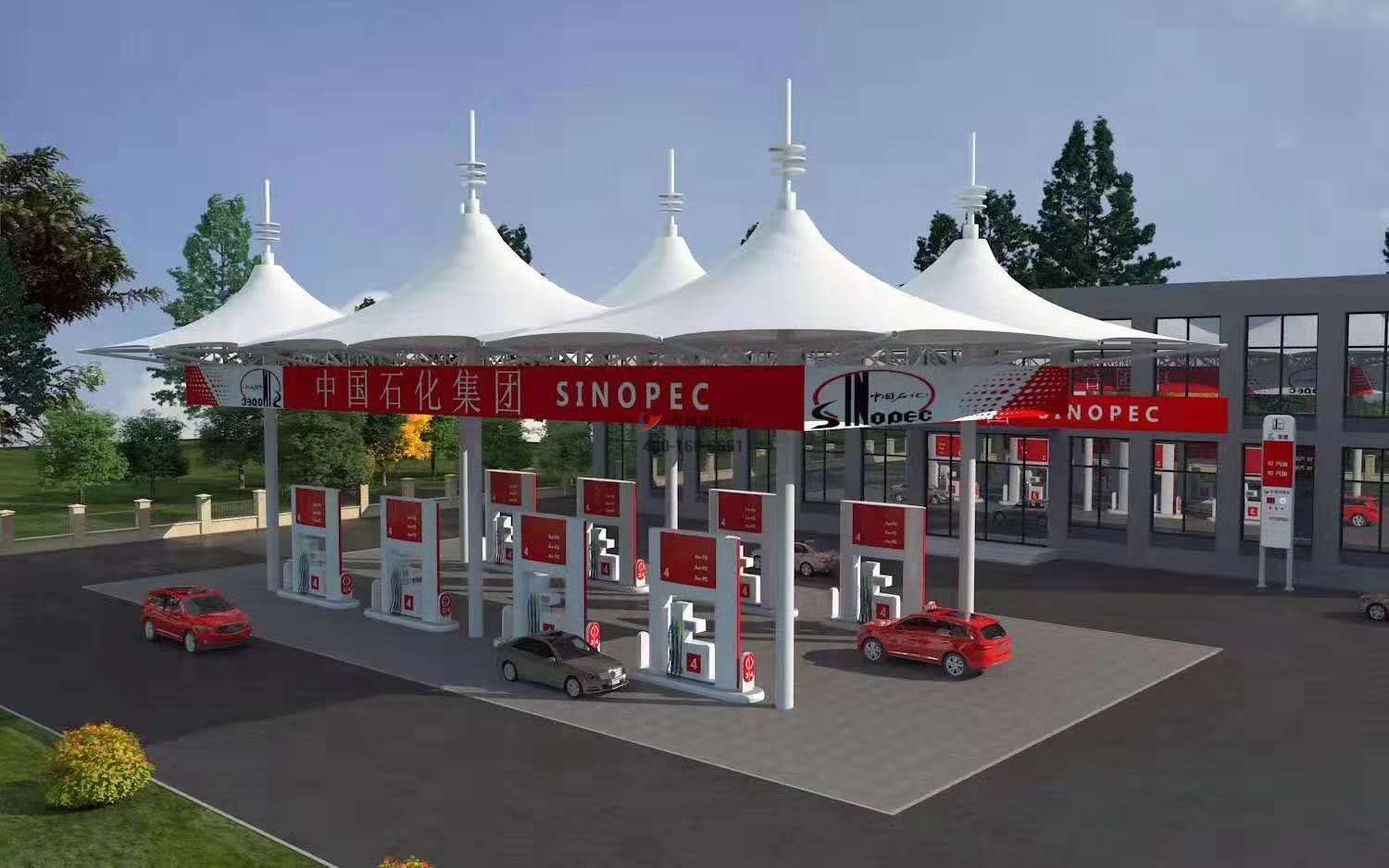 1、中國(guó)油聯(lián)膜結(jié)構(gòu)加油站遮陽(yáng)棚