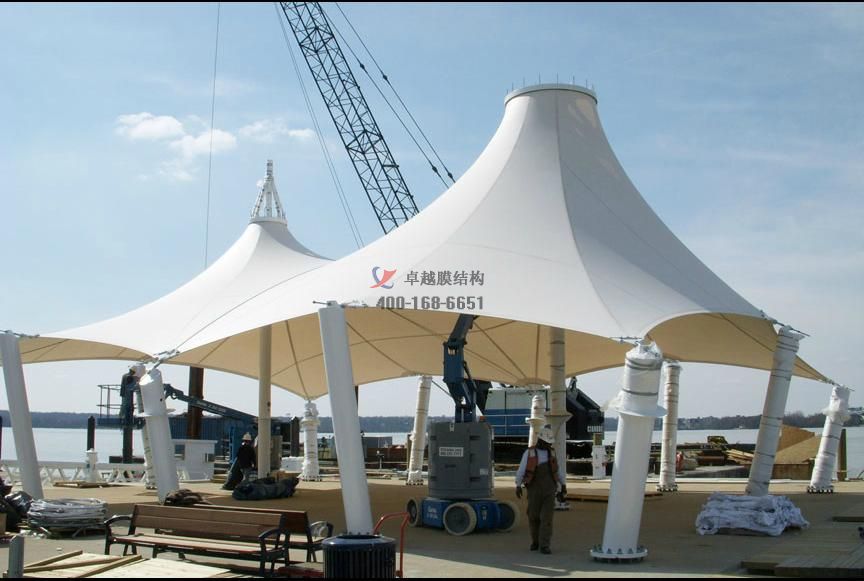 膜片的裁剪、鋼索及鋼結構等的制作均在工廠完成,減少現(xiàn)場施工時