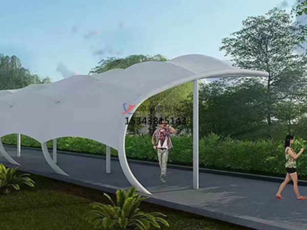 3、張拉膜車棚頂部封板基本都采用茶色的陽(yáng)光板進(jìn)行封頂,和車棚整體的骨架用壓條鉚接固定,不僅耐酸堿腐蝕,而且有足夠的強(qiáng)度對(duì)棚內(nèi)車輛起到保護(hù)作用。