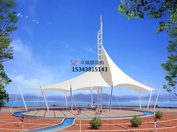 景觀膜結構-價格便宜外型結構輕巧膜結構所用的膜材從生產到加工,都是無害的,使用壽命長,而且不會對環(huán)境造成任何影響,而且其自動輕,所以其基礎施工以及支撐系統(tǒng)的材料用量都將大大減少,而且膜材具有良好的通光率,白天完全依靠自然光滿足室內的照明,這就大大減少了照明設施的運轉時間,降低用電量,而且這種明亮是依靠光線的漫反射,會讓人感覺很柔和,膜結構建筑中的主要材料膜材,剛才都是可以回收循環(huán)利用的,這就進一步的節(jié)省了建筑材料。