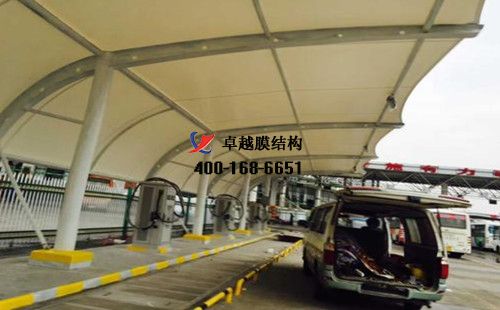 膜結(jié)構(gòu)充電站樁車棚設(shè)計、施工案例,我們在長沙承接了長沙市公共交通有限公司、長沙飛升新能源科技有限公司、長沙南站