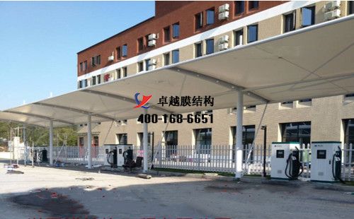 我們承接了該公司的膜結(jié)構(gòu)充電站樁車棚項目。