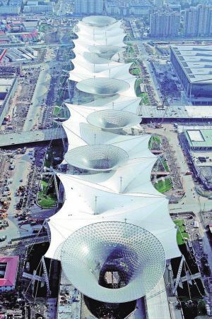 水立方(更好的游泳館)的建面總和了,總造價超過30億人民幣,其由德國SBA公司設(shè)計,上海華東建筑設(shè)計研究院和上海市政工程設(shè)計研究總院完成施工圖設(shè)計,上海世博土地控股有限公司負責(zé)建設(shè),于2006年12月28日開工,2009年底竣工,是一個集商業(yè)、餐飲、娛樂、會展、交通等功能于一體的大型綜合體建筑。其造型新穎,構(gòu)思巧妙,并應(yīng)用了大量的高新材料,是建筑與藝術(shù)的又一次完美結(jié)合。