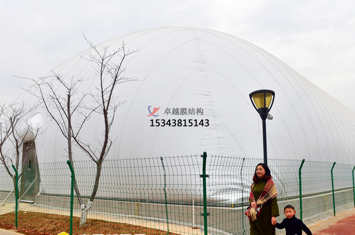 2、我公司利用膜結(jié)構(gòu)的輕巧,別致的造型建造各種半封閉,全封閉充氣膜結(jié)構(gòu)中的高強(qiáng)度柔韌薄膜稱(chēng)膜材,它是一種耐腐蝕、耐高溫、耐久用、高強(qiáng)度的樹(shù)脂類(lèi)涂層織物,由多種復(fù)合PVC樹(shù)脂涂層刀刮成型,具有質(zhì)地柔韌、厚度小、重量輕、透光性好的特點(diǎn)。對(duì)自然光吸收和透射能力、阻燃,具有良好的耐久、防火、氣密等特性;表面經(jīng)過(guò)特氟龍?zhí)幚砘蚨?a title="氧化">氧化鈦抗老化處理,具有較高的自清潔性能。下面就大家介紹一下我公司在蘭州市地區(qū)完成的部分膜結(jié)構(gòu)項(xiàng)目。