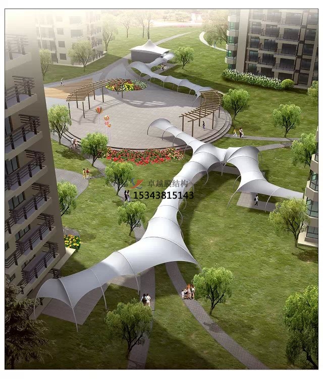 二是覆蓋大跨度空間,膜結(jié)構(gòu)由于自重輕,加上鋼索、鋼結(jié)構(gòu)高強(qiáng)度材料的應(yīng)用,通過合理的設(shè)計(jì)受力體系,簡(jiǎn)潔合理,故使膜結(jié)構(gòu)適合跨越較大跨度空間,從而形成開闊的無(wú)柱大跨度結(jié)構(gòu)體系工程。三是防火性和抗震性,膜結(jié)構(gòu)建筑所采用的膜材具有助燃性和耐高溫性,能很好的滿足防火要求。由于自重輕,柔性強(qiáng),故抗震性能好。四是施工工期短,由于骨架的鋼結(jié)構(gòu)和膜材裁剪可以在工廠加工制作,現(xiàn)場(chǎng)只需要組裝,施工簡(jiǎn)便快捷,施工周期較傳統(tǒng)建筑短。