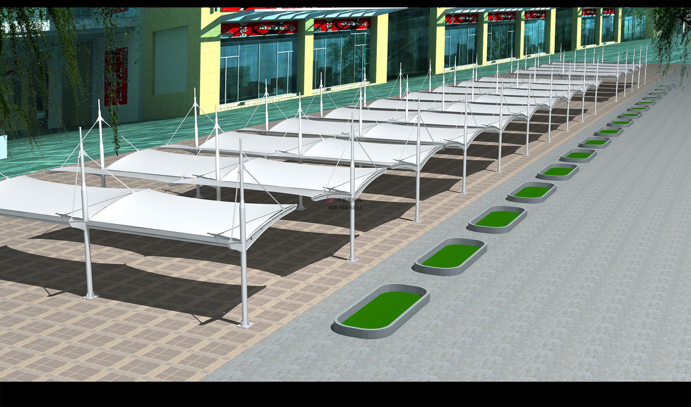 1,通遼市宏源硅砂有限公司膜結(jié)構(gòu)車棚