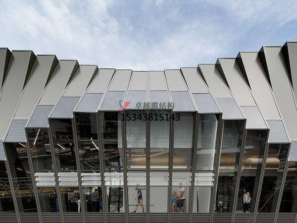 其造型自由輕巧、阻燃、制作簡易、安裝快捷、節(jié)能、易于施工、使用安全等優(yōu)點,因而使它在世界各地受到廣泛應(yīng)用。另外值得一提的是,在陽光的照射下,由膜覆蓋的建筑物內(nèi)部充滿自然漫射光,無強反差的著光面與陰影的區(qū)分,室內(nèi)的空間視覺環(huán)境開闊和諧。夜晚,建筑物內(nèi)的燈光透過屋蓋的膜照亮夜空,建筑物的體型顯現(xiàn)出夢幻般的效果。這種結(jié)構(gòu)形式特別適用于大型體育場館、入口廊道、小品、公眾休閑娛樂廣場、展覽會場、購物中心等領(lǐng)域。