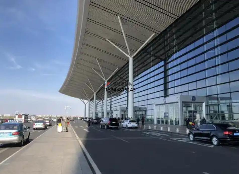 以鋼索、梭形柱為支撐體系,結(jié)合張拉式或脊谷式設(shè)計,實現(xiàn)無柱大空間覆蓋(如岳陽三荷機場單跨達86米)。