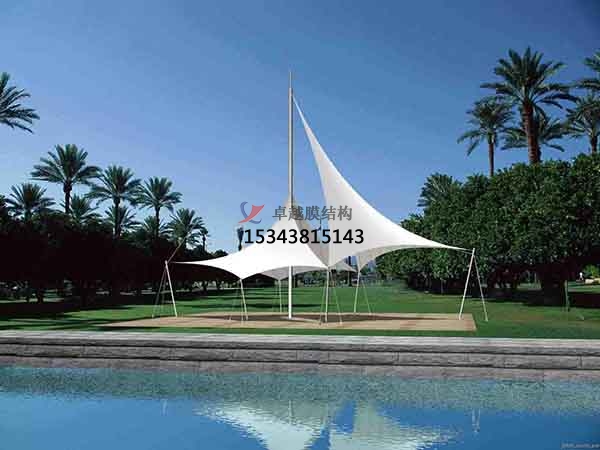 2、景觀膜結(jié)構(gòu)是建筑結(jié)構(gòu)中一個(gè)的更新發(fā)展起來的一種建筑的構(gòu)件。它是以性能的是優(yōu)良的織物是為材料的,或是向膜內(nèi)的是充氣, 由空氣的壓力是支撐的膜面,或是利用的是柔性鋼索的是將膜面的繃緊,從而是形成具有一定的剛度的、是能夠覆蓋大跨度的空間的建筑結(jié)構(gòu)的體系。