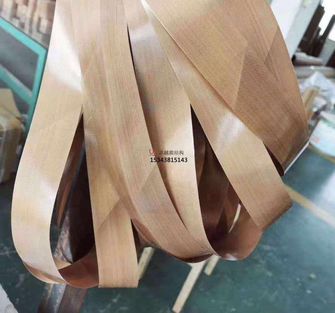 1.PTFE膜材內(nèi)絲為玻璃纖維絲,所以加工難度比PVDF膜材大。