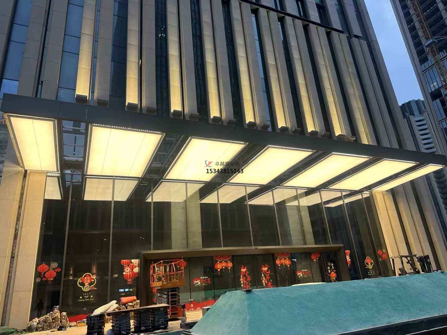 - 膜材張緊:在膜材固定和連接完成后,通過調(diào)整支撐結(jié)構(gòu)或使用專門的張緊設(shè)備,對膜材進(jìn)行張緊,使其達(dá)到設(shè)計要求的張力狀態(tài)。張緊過程中要密切關(guān)注膜材的變形情況,確保其變形在允許范圍內(nèi),且膜面平整、無褶皺。同時,要使用測量儀器對膜材的張力進(jìn)行監(jiān)測和控制,保證各部位的張力符合設(shè)計值。