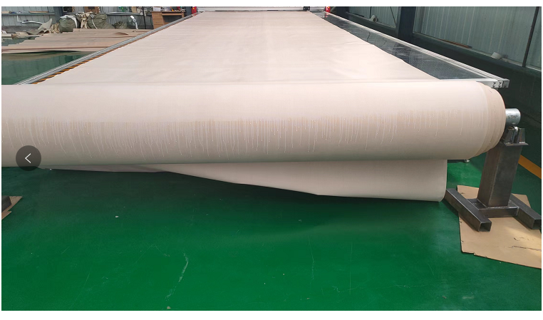 此圖為PTFE膜材裁剪加工,上裁剪機(jī)加工過程。
