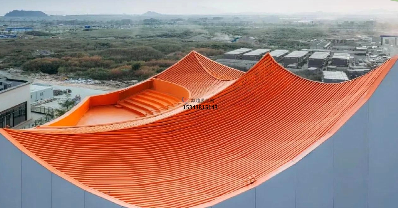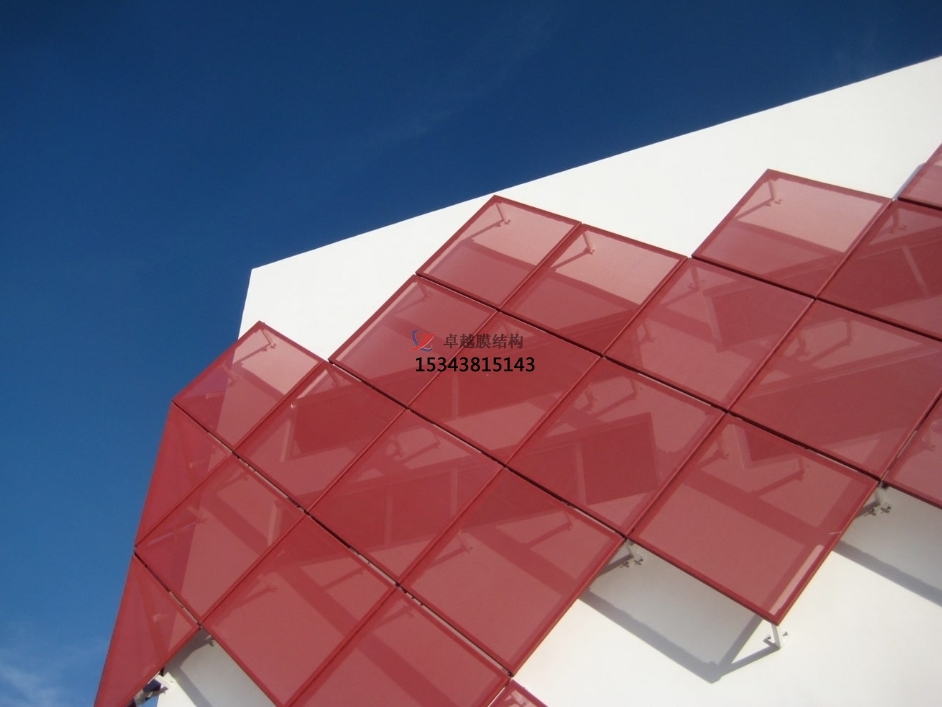 PTFE膜材,這種材料不僅具有半透明的效果,還能減弱建筑的壓迫感,增加親和力。