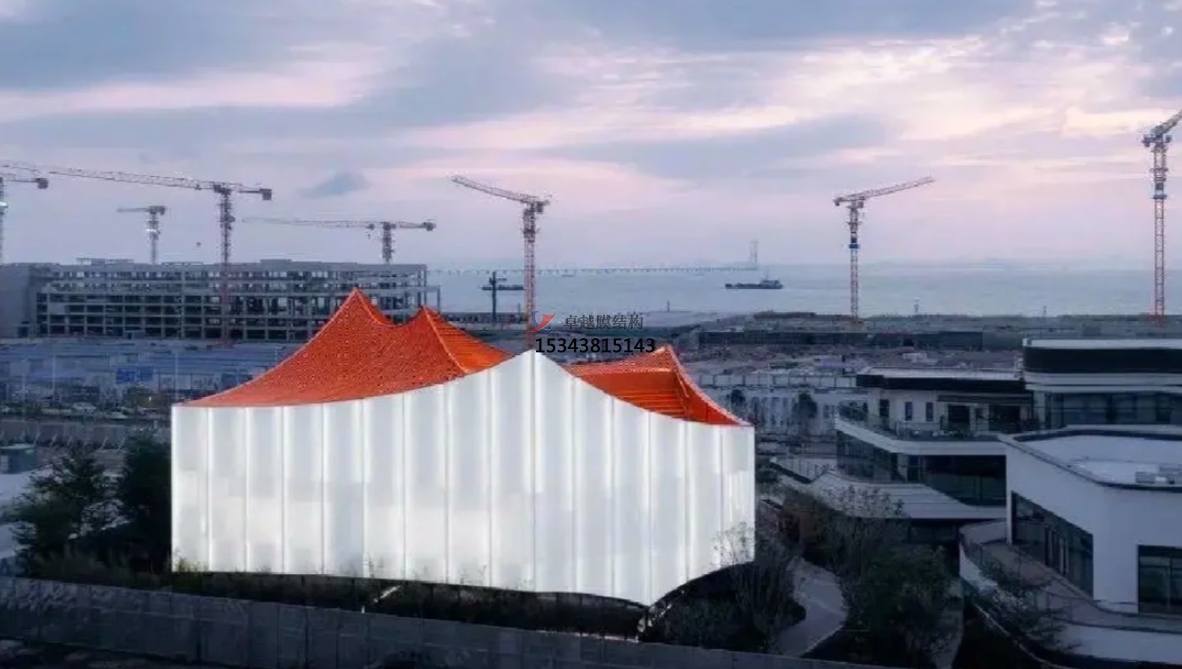 大灣區(qū)館:PTFE膜魅力 在大灣區(qū)中心展覽館的設(shè)計(jì)中,我們選擇了28%和50%孔隙率的