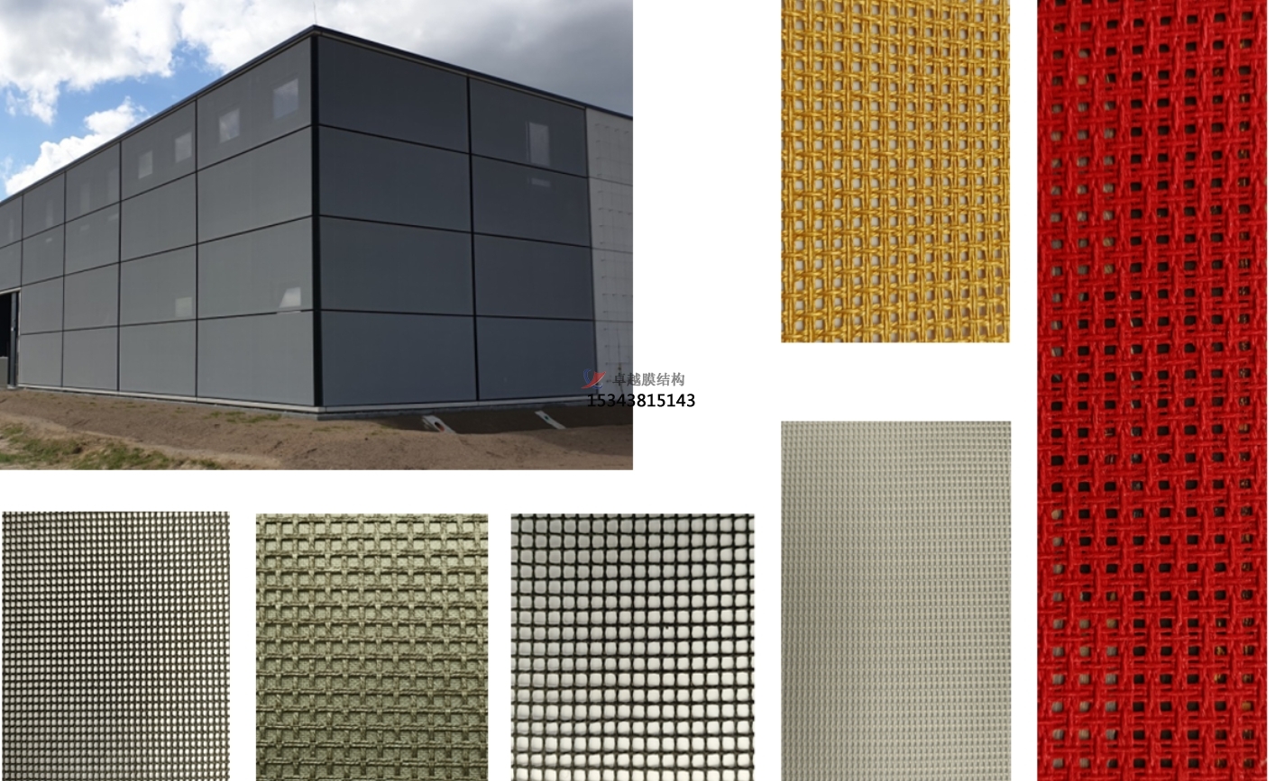 PTFE網(wǎng)格膜的制作工藝涉及將玻璃纖維基材的紗線網(wǎng)格間距適當(dāng)加大,并浸漬PTFE乳液,從而形成具有特定開孔率的網(wǎng)格織物基材。隨后,在嚴(yán)格的溫度和壓力條件下,將PTFE薄膜雙面貼覆于基材上,最終定型為具有特定厚度和幅寬的網(wǎng)格覆膜材料,通常被稱為高透膜。得益于玻璃纖維紗線成熟的編織工藝,可以定制出高強(qiáng)度的織物基材,其強(qiáng)度等級(jí)可達(dá)到G6。即便不借助拉索,膜單元的跨度也可輕松達(dá)到約5米。此外,PTFE的耐久性和自潔性也相當(dāng)出色,使得這種覆膜材料在外觀效果上表現(xiàn)出色。