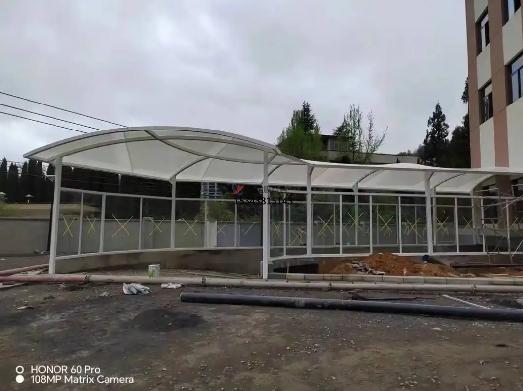 膜結(jié)構(gòu)雨棚的設(shè)計(jì)靈活多樣,可以根據(jù)實(shí)際情況進(jìn)行定制。同時(shí),其建設(shè)周期相對(duì)較短,能夠快速搭建,提高了施工效率。