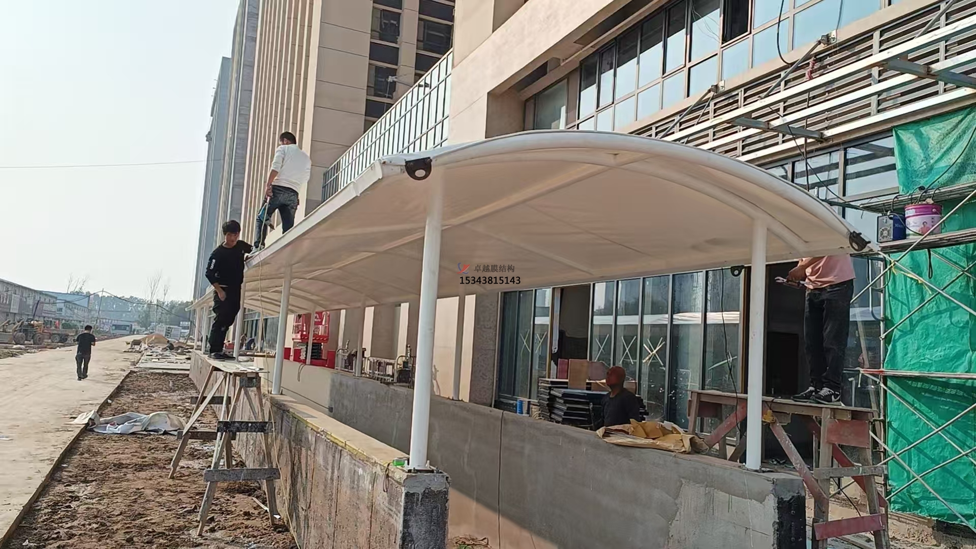 因為地下車庫出入口施工環(huán)境較為復(fù)雜,且膜結(jié)構(gòu)雨棚裝置多為高空作業(yè),施工安全尤為重要。施工單位要制定完善的安全管理制度,為施工人員配備必要的安全防護裝備,如安全帽、安全帶、安全網(wǎng)等。一起,要對施工現(xiàn)場進行合理的安全阻隔,設(shè)置警示標志,防止無關(guān)人員進入施工區(qū)域,保證施工過程安全有序。