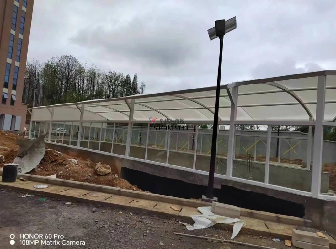 地下車庫出入口膜結(jié)構(gòu)雨棚憑借其杰出的功能、漂亮的造型和經(jīng)濟高效的特色,在現(xiàn)代城市建設(shè)中發(fā)揮側(cè)重要效果。經(jīng)過科學(xué)合理的規(guī)劃和嚴格規(guī)范的施工,膜結(jié)構(gòu)雨棚能夠為地下車庫供給牢靠的防護,提高修建的全體質(zhì)量和形象,為人們的日子帶來更多便當和舒適。跟著膜結(jié)構(gòu)技能的不斷發(fā)展和創(chuàng)新,相信地下車庫出入口膜結(jié)構(gòu)雨棚將會在未來的修建領(lǐng)域展現(xiàn)出更加寬廣的使用遠景。