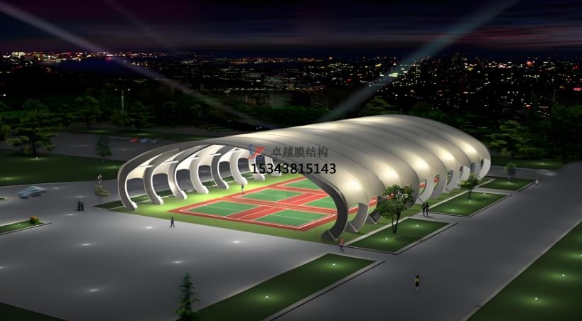 球場(chǎng)膜結(jié)構(gòu)是一種以膜材料為主要覆蓋物,采用高強(qiáng)度柔性薄膜材料,結(jié)合鋼結(jié)構(gòu)或索網(wǎng)結(jié)構(gòu),通過施加預(yù)應(yīng)力形成具有一定剛度和承載能力的建筑結(jié)構(gòu)。廣泛應(yīng)用于足球場(chǎng)、網(wǎng)球場(chǎng)、籃球場(chǎng)等體育場(chǎng)館。