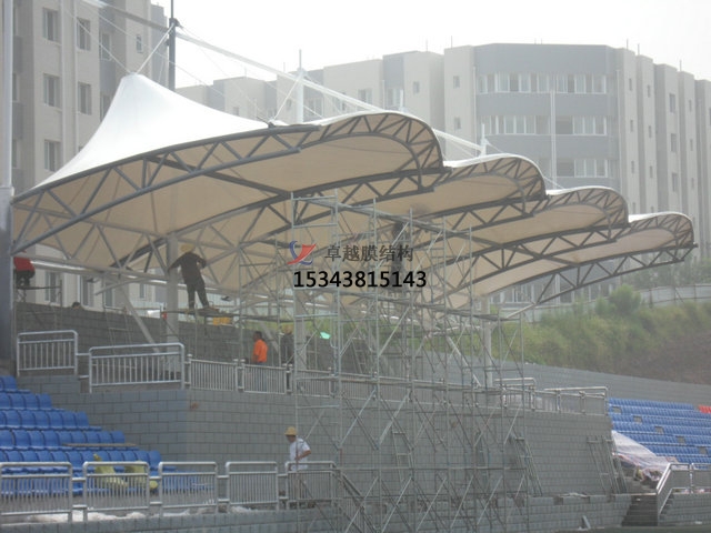 膜結(jié)構(gòu)體育場的優(yōu)勢:膜結(jié)構(gòu)體育場具有建筑性能優(yōu)越、節(jié)能環(huán)保高效、施工與維護(hù)便捷、施工與維護(hù)便捷、空間利用與美觀性好。其細(xì)節(jié)分別在于,建筑性能優(yōu)越,結(jié)構(gòu)輕巧,跨度大,采用高強(qiáng)度薄膜材料,自重僅為傳統(tǒng)結(jié)構(gòu)的二十分之一,大大減輕建筑物負(fù)荷,可設(shè)計(jì)出更大跨度空間,降低基礎(chǔ)工程投資,有效利用場地空間。抗風(fēng)抗震,安全性高,具有良好的空氣動力學(xué)性能,能有效抵抗強(qiáng)風(fēng),其柔性結(jié)構(gòu)在地震中表現(xiàn)出良好的抗震性能,確保體育場在自然災(zāi)害中的安全性。防水隔熱,耐候性強(qiáng),膜材料具有優(yōu)異的防水性能,能有效防止雨水滲透,同時具備良好的保溫隔熱性能,能有效降低室內(nèi)外溫差,抵御各種惡劣天氣,使用壽命可達(dá) 30 年以上;節(jié)能環(huán)保高效,光學(xué)性能優(yōu)越,具有優(yōu)異的透光性,能夠自然采光,減少能源消耗,同時其反射性能可降低熱量吸收,有助于降低室內(nèi)溫度,實(shí)現(xiàn)節(jié)能減排。材料可回收利用,膜材料可回收利用,符合綠色建筑理念,帶來顯著的經(jīng)濟(jì)效益;施工與維護(hù)便捷,施工速度快,可以在工廠內(nèi)預(yù)制膜結(jié)構(gòu)和支架,然后運(yùn)至現(xiàn)場進(jìn)行組裝和安裝,大大縮短建造周期。維護(hù)成本低,膜結(jié)構(gòu)具有自潔功能,表面不易沾染灰塵和污垢,減少了維護(hù)成本和維護(hù)工作量;空間利用與美觀性好,高效利用空間,膜結(jié)構(gòu)頂棚可以在不增加建筑體積的前提下,為體育館提供更大的使用面積,有效地利用了空間。獨(dú)特視覺效果,外形可以設(shè)計(jì)成各種形狀和顏色,創(chuàng)造出獨(dú)特的視覺效果,如盧賽爾體育場的膜結(jié)構(gòu)呈現(xiàn)出阿拉伯金色碗狀造型,提升了體育場的藝術(shù)價值和城市形象。