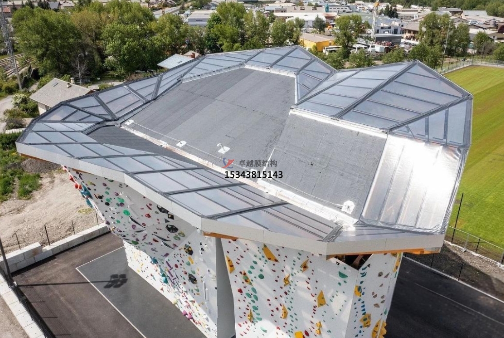 STFE膜材是新一代柔性建筑材料,具有出色的透光性,阻隔有害紫外線且具有遮陽透景功能,大大減少空間封閉感,同時以其高強度和輕量特性著稱。它能夠覆蓋大跨度結構,從而減少對輔助支撐結構的需求。配備STFE屋頂的“巢”,讓攀巖者能夠全年無休地體驗戶外攀巖的樂趣,大幅提升了這一場地的吸引力。