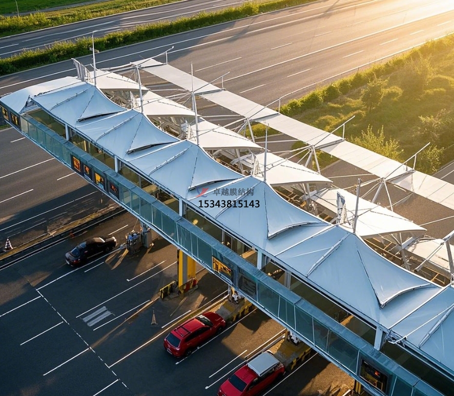 天然采光:選用透光性膜材,能充分使用天然光照明,削減白天對人工照明的依靠。這不只降低了能源消耗,還營造出明亮、舒適的收費環(huán)境,提高收費人員工作功率 。