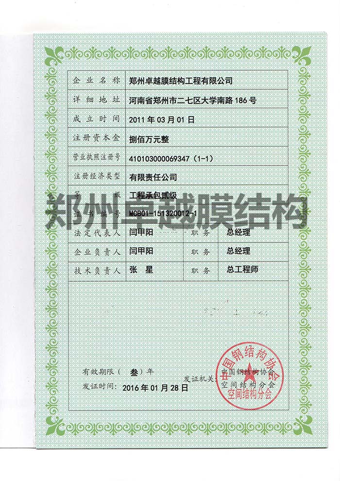膜結(jié)構(gòu)承包二級(jí)資質(zhì)