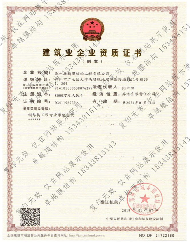 膜結(jié)構(gòu)制作二級(jí)資質(zhì)