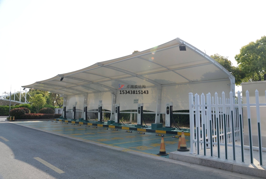 充電站膜結(jié)構(gòu)雨棚作為一種新穎且實(shí)用的配套設(shè)施,正逐漸成為充電站建設(shè)的標(biāo)配。這種雨棚不僅為電動(dòng)汽車提供了安全的充電環(huán)境,還以其獨(dú)特的造型和美觀的外觀,為城市景觀增添了一抹亮色。充電站作為電動(dòng)汽車的重要補(bǔ)給站,其安全性與便利性至關(guān)重要。