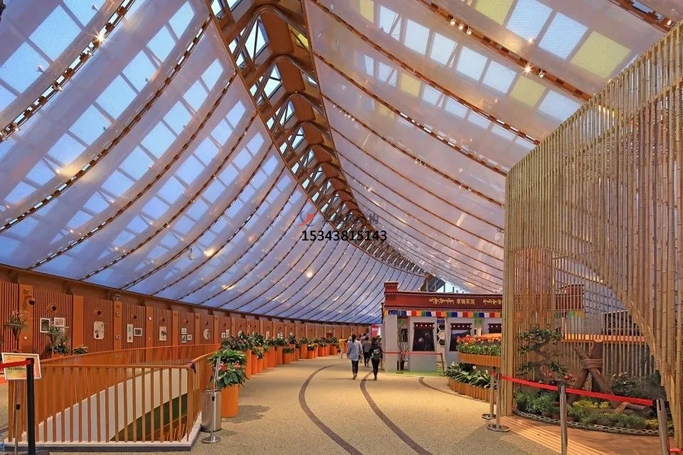 張拉膜結(jié)構(gòu)遮陽棚除了具有觀賞價值外,還能為商家提供廣告宣傳的平臺。膜結(jié)構(gòu)遮陽棚的表面可以印刷各種廣告信息,有效吸引消費者的目光,提升商業(yè)街的經(jīng)濟效益。