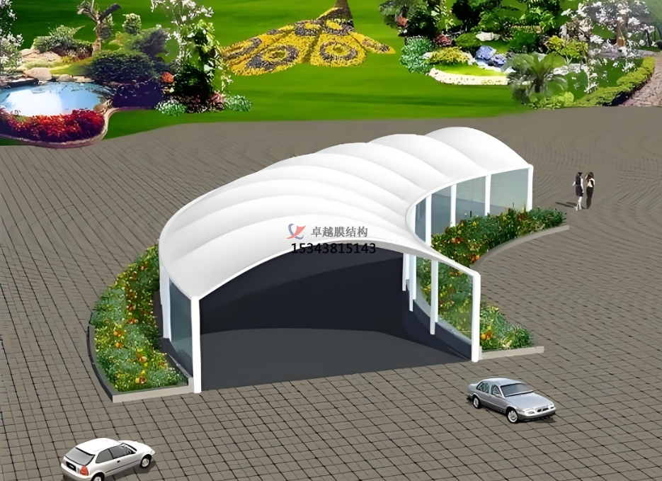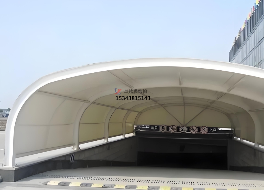 總之,車(chē)庫(kù)出入口膜結(jié)構(gòu)頂棚是一種集實(shí)用、美觀、環(huán)保和經(jīng)濟(jì)效益于一體的創(chuàng)新建筑形式。它的出現(xiàn)為現(xiàn)代建筑的發(fā)展提供了新的思路和方向,相信在未來(lái)的建筑領(lǐng)域中,膜結(jié)構(gòu)頂棚將會(huì)得到更加廣泛的應(yīng)用和發(fā)展。