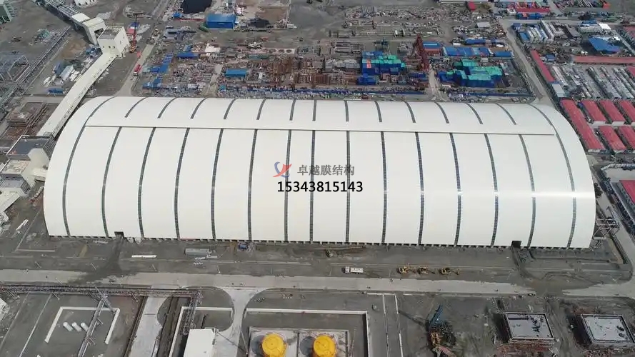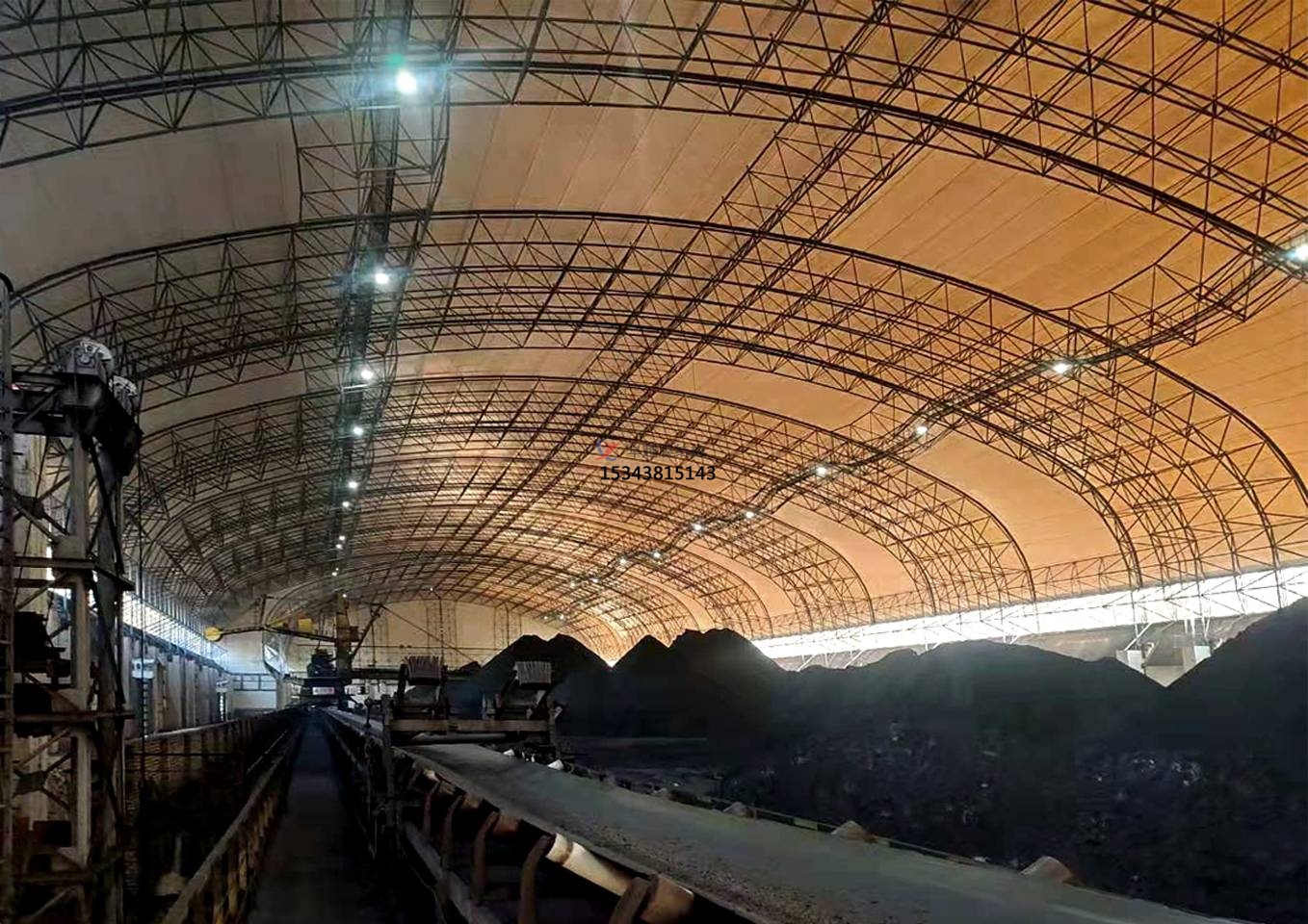 膜結構作為一種以輕質、高強度的聚合物膜材料為主要構建元素的空間結構形式,通過張力平衡原理形成穩(wěn)定的空間形態(tài)。在煤棚設計中,通常采用雙層或多層膜結構,結合先進的涂層技術,以實現(xiàn)良好的透光性、隔熱性、防水性和耐久性。這種結構不僅減輕了建筑自重,還極大提升了建設速度和靈活性,為煤炭的臨時或長期儲存提供了理想的解決方案。