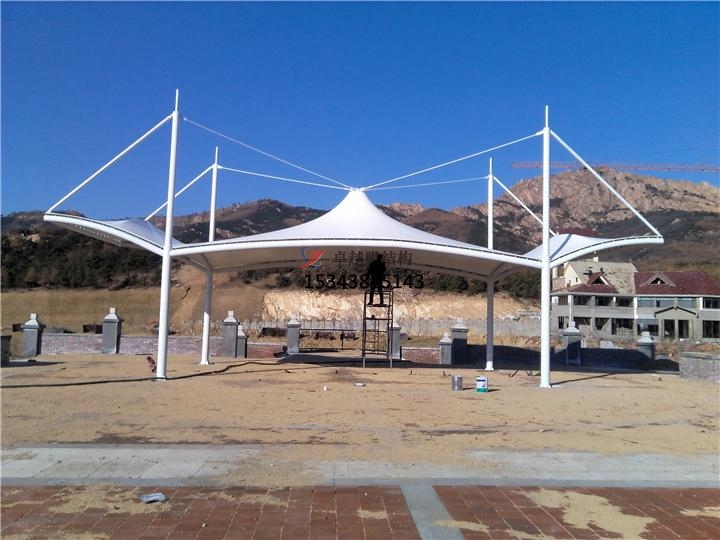 因為景觀膜結構遮陽棚是由多種高強薄膜資料及加強構件經(jīng)過必定方法使其內(nèi)部發(fā)生必定的預張應力以構成某種空間形狀,作為掩蓋結構,并能接受必定的外荷載效果的一種空間結構方式。