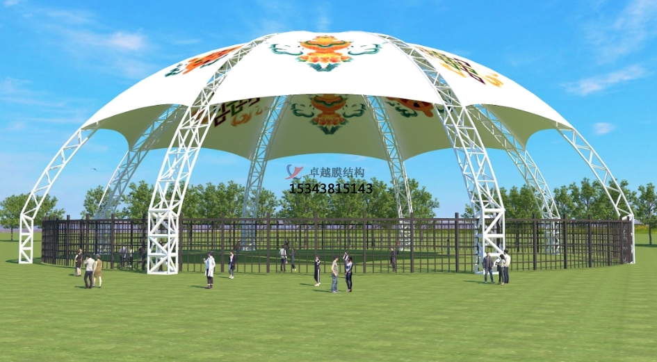 別看膜結(jié)構(gòu)看似輕盈柔弱,實際上它卻擁有著出色的力學(xué)性能。它能夠承受一定程度的風(fēng)雪荷載、風(fēng)荷載等自然外力,并且具有良好的自潔性,經(jīng)過特殊處理的膜材表面能夠在雨水的沖刷下自動清潔灰塵和污漬,保持外觀的整潔美觀。此外,膜材還具備較好的防火、防腐、耐老化等性能,確保了景觀棚在長期使用過程中的穩(wěn)定性和安全性。