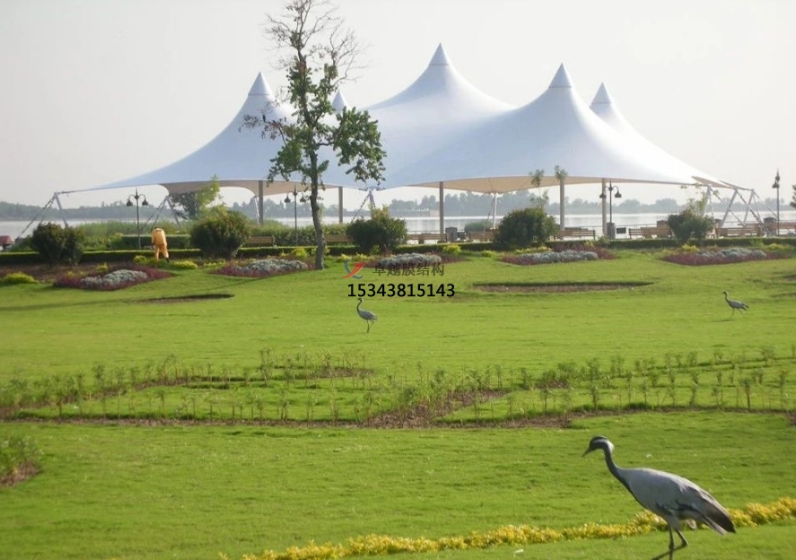 膜結構通透特質使區(qū)域既相對獨立又彼此關聯(lián),游客游覽時感受空間轉換變化,增添景觀趣味性與層次感。同時,膜結構作為景觀視覺焦點,在空曠草坪或廣場上,獨特造型的景觀亭或雕塑吸引目光,使景觀布局更趨均衡且富有吸引力。