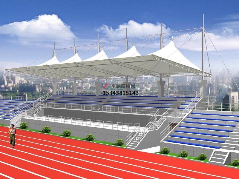 張拉膜看臺主要用于各類地方體育場主席臺雨棚,各類學(xué)校體育場看臺雨棚遮蓋,我公司是國內(nèi)較早從事大懸挑張拉膜結(jié)構(gòu)看臺設(shè)計施工的專業(yè)廠家,下面介紹一下我們在天津市周邊縣市完工的一些張拉膜看臺設(shè)計施工案例,我公司先后在天津市周邊承接了天津市益中學(xué)校膜結(jié)構(gòu)主席臺雨棚、天津市雙菱中學(xué)膜結(jié)構(gòu)主席臺罩棚、天津市南開翔宇學(xué)校膜結(jié)構(gòu)主席臺遮陽棚等設(shè)計施工項目,簡介如下: