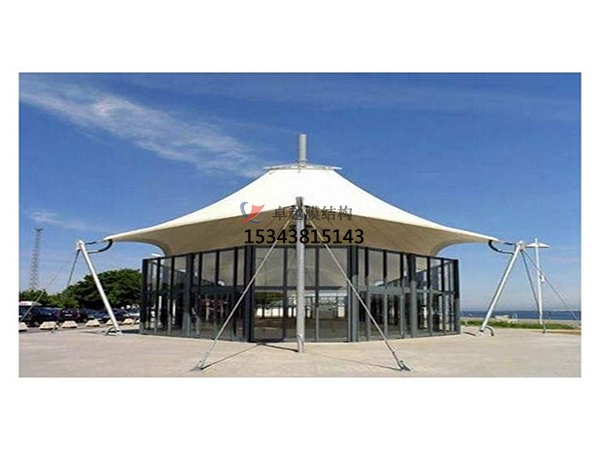 膜結(jié)構(gòu)車棚膜結(jié)構(gòu)所用的膜材料為具有、阻燃、耐久、自潔等特性的復(fù)合材料,一般由基布和涂層二部分組成?;贾饕捎镁壑w維或玻璃纖維絲編織而成,有平織和絞等多種編織方法,不同的膜結(jié)構(gòu)車蓬編織方法影響著膜材料的經(jīng)緯向力學(xué)性能指標(biāo),膜的抗拉強(qiáng)度和抗撕裂強(qiáng)度等;涂層材料主要有聚四氟乙烯和聚氯乙烯,在一定程度上提高了膜材料各項(xiàng)強(qiáng)度指標(biāo),為提高膜材料的耐久、自潔等特性,表面往往有一層氟涂層或硅涂層,膜材料的耐火、耐久及防水、自潔等性能,決定著膜材料的物理特性。