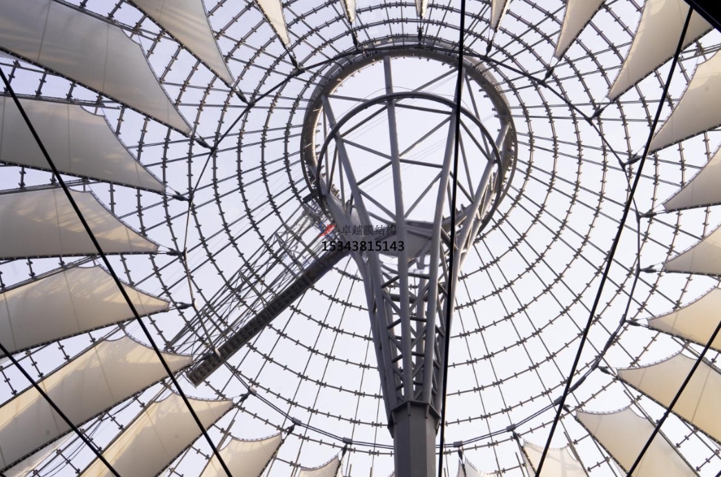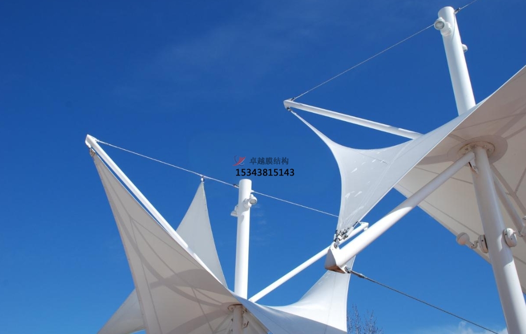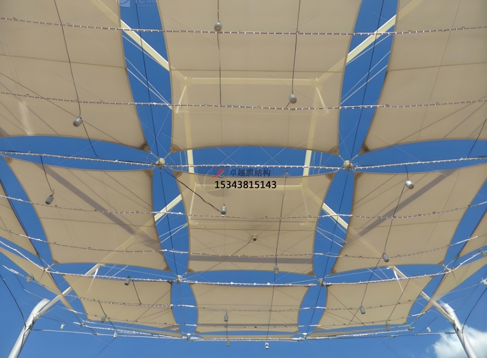 支撐體系則包括拉索、桅桿、拱等結(jié)構(gòu)部件。拉索如同整個結(jié)構(gòu)的 “筋骨”,通過合理布置,將膜材張拉至預(yù)定形狀,為膜材提供穩(wěn)定的支撐力。桅桿和拱等作為主要的豎向或曲線支撐,與拉索協(xié)同工作,共同確定膜結(jié)構(gòu)的空間形態(tài)。其原理基于力的平衡,利用膜材的張力和拉索的拉力相互作用,使整個結(jié)構(gòu)處于穩(wěn)定的受力狀態(tài),如同一張被精心張緊的巨型 “織物”,在風(fēng)中展現(xiàn)出獨(dú)特的力學(xué)美感。