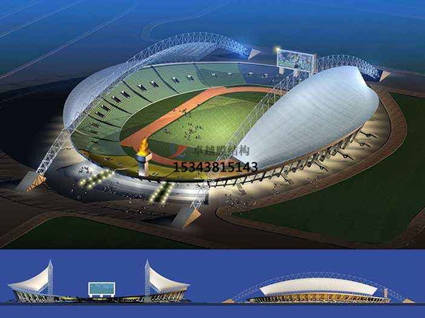 膜結(jié)構(gòu)又包含張拉膜結(jié)構(gòu)、骨骼式膜結(jié)構(gòu)、充氣式膜結(jié)構(gòu)。張拉膜結(jié)構(gòu)是依靠本身的張拉應(yīng)力與支撐桿和拉索共同構(gòu)成組織系統(tǒng)。