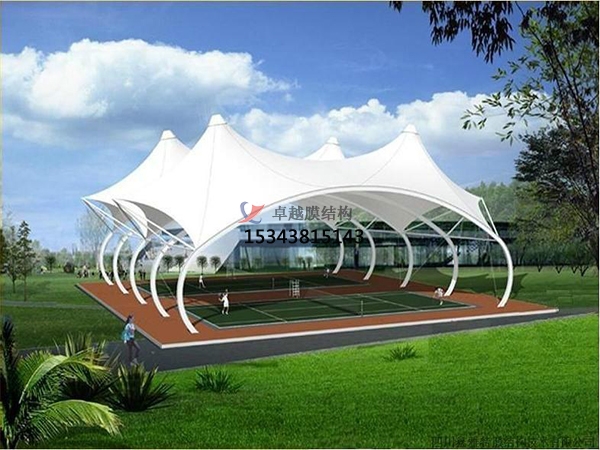 在體育場(chǎng)館的修建中使用膜構(gòu)造已成為搶手,并已開展到掩蓋體育場(chǎng)的悉數(shù)看臺(tái),膜結(jié)構(gòu)網(wǎng)球場(chǎng)其懸挑的跨度也越來越大,在競(jìng)賽場(chǎng)地的中間局部的預(yù)蓋還能做成好天開敞、雨天遮蓋的開閉式構(gòu)造,添加了新的功用。