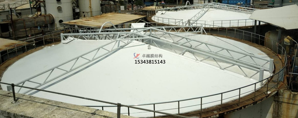 反吊膜用在污水廢氣治理上效果明顯.膜材占了很大的優(yōu)勢。目前市面上許多的反吊膜工程都是采用PVDF膜材.當(dāng)然能用在膜結(jié)構(gòu)上的膜材不止這一種,還有ETFE膜材、PTFE膜材等,但相對來說PVDF膜材是較為適合做反吊膜的,原因在于: