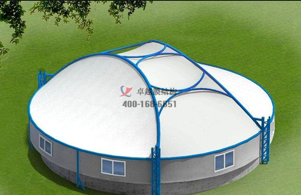 膜材質(zhì)輕,抗拉強(qiáng)度高,而且經(jīng)過特殊光固化處理,對防腐、防霉、防菌都變得十分優(yōu)越。對大跨度使用上具有優(yōu)勢,造型多樣,美觀新穎;