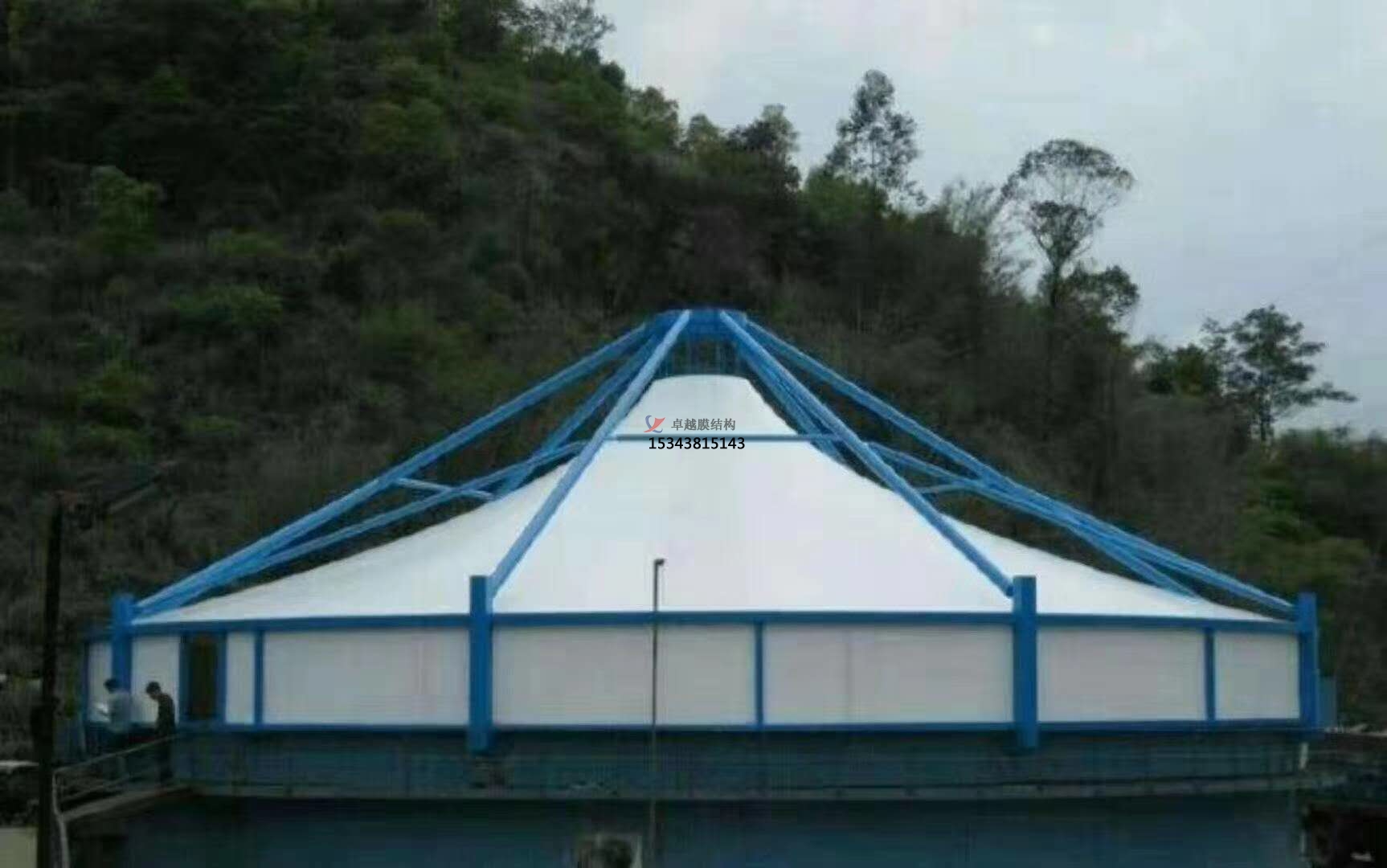 索膜結(jié)構(gòu)形式:管桁架四邊張拉索膜結(jié)構(gòu)污水池加蓋